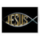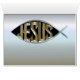 De woorden Jezus in goud in een vissymbool. frontiernow.com
