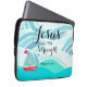 Draw strength and inspiration from our beautifully designed Jesus is my Strength Laptop Sleeve! Adorned with vibrant turquoise, white, and red, the cover features the uplifting words "Jesus is my Strength" and "Philippians 4:13."