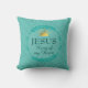 Elegant turquoise JESUS KING OF MY HEART Sierkussen, toont een gouden gekleurde kroon en faux goudtypografie in het midden, in een diepe turquoise kreet. Op de achtergrond staat in de tekst de KONING OF KINGS in een subtiel getild patroon, dat op de rug doorgaat. Dit zou een mooie aanvulling zijn op je kerstdecor, en een prachtig, stijlvol geschenk gedurende het hele jaar.