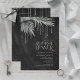 Kies voor een oude Hollywood glam door de stukken in deze trouwsuite te gebruiken zoals getoond, met juwelen die de diamanten-omringde palmbladeren afvegen of de juwelen lagen verwijderen voor een iets conservatievere blik. Deze set is voorzien van bladeren in glanzend zilver tegen een donkere houtskool, getextureerde achtergrond. De hier getoonde repetitieve diner heeft een hoekgrens van mousserende bladeren, en een elegante Serif doopvont om aan de romance toe te voegen. Voer uw gebeurtenisgegevens eenvoudig in met de meegeleverde sjabloon. Uitzicht de verbinding van het collectie op deze pagina om alle passende punten in deze prachtige reeks of onderzoek ID830 te zien om extra kleurenopties voor dit ontwerp te zien.