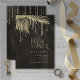 Kies voor een oude Hollywoodglam door de stukken in deze trouwsuite te gebruiken zoals getoond, met juwelen die de met diamanten omringde palmbladeren omhullen, of verwijder de juwelen lagen voor een iets conservatievere blik. Deze set is voorzien van bladeren in glanzend goud tegen een getextureerde achtergrond met de rijke kleur van zwarte koffie. De bruiddoucheuitnodiging hier heeft een hoekgrens van mousserende bladeren, en een elegante Serif doopvont om aan de romance toe te voegen. Voer uw gebeurtenisgegevens eenvoudig in met de meegeleverde sjabloon. Uitzicht de verbinding van het collectie op deze pagina om alle passende punten in deze prachtige reeks of onderzoek ID830 te zien om extra kleurenopties voor dit ontwerp te zien.