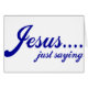 Jezus t-shirts en geschenken voor mannen, vrouwen en kinderen. Mokken, canvas tassen, petten, schorten, knopen, stickers, en meer die het gezegde Jezus kenmerken...Alleen gezegde.