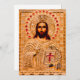 Jezus Christus in gouden metalen gedecoreerd met rode stenen. Een boek houden met een rood kruis. Sluit Fotografie.