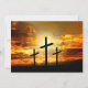 Jezus Christus en de verbijsterde Maagd Maria met een duif die de kruisen op Calvariumheuvel overziet bij zonsondergang. http://frontiernow.com Voeg alsjeblieft je eigen tekst toe.