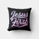 Wat een herinnering voor al degenen die het zien en lezen – Jezus zou altijd in de eerste plaats in het leven van een Christelijk moeten zijn! Het ontwerp zelf zal beschikbaar zijn in een paar verschillende kleuren om uit te kiezen. Dit kussen is verkrijgbaar in verschillende stoffen en maten.