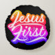 Wat een herinnering voor al degenen die het zien en lezen – Jezus zou altijd in de eerste plaats in het leven van een Christelijk moeten zijn! Het ontwerp zelf zal beschikbaar zijn in een paar verschillende kleuren om uit te kiezen. Dit kussen is verkrijgbaar in verschillende stoffen en maten.