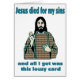 Hoe vaak heb je dit in je e-mail ontvangen? Jezus stierf voor mijn zonden en alles wat ik kreeg was zo slecht...vul de spaties in. Nu kun je het hebben op elk object. Pak het op t-shirts, mokken, stoepieters, magneten, zelfs een hondenshirt! Geweldig geschenk voor de ketters in je leven of het zeldzame Christelijk met een gevoel van humor.