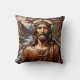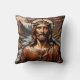 Jezus staat met een serene uitdrukking, omlijst door majestueuze bergen en een stromende rivier onder een stralende halo. Het landschap roept rust en reflectie op.