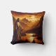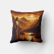 Jezus staat met uitgestrekte armen bij een rivier, omringd door majestueuze bergen tijdens een adembenemende zonsondergang, waardoor een serene en spirituele sfeer wordt gecreëerd.