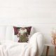 Dit mooie feestelijke kussen heeft een vrolijke, roosbruine, ouderwetse kerstman voor het kerstgebladerte. Ideaal om het feestelijke seizoen in elke kamer van het huis en een mooi cadeau te brengen.