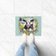 Een prachtige afbeelding van een jong kalf omringd door een prachtige krans van lentebloemen en levendige vlinders, die de frisheid van de natuur, een nieuw begin en de onschuld van het leven symboliseert.