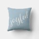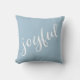 Joyful Pastel Blue Script Kerstfeestdag Pillow. Eenvoudige en moderne vrolijke wens in een wit trendy manuscript op een blauwe achtergrond.
