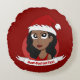 Rond kussen met een illustratie van mooie jonge Afro-Amerikaanse vrouw met golvend haar en het pet van de Kerstman; met bewerkbare tekst sjabloon, Kerst feestdagen ontwerp met een rode achtergrond