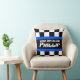 Origineel grafisch kinder slaapkamerkussen voor kinderen. Perfect voor een race-stijl jongens slaapkamer. Met blauwe grafische tekst en geruite vlagstrepen en geruite vlag op de achterzijde. Pas het aan met de woorden en de naam van uw keuze. Op dit moment is het de beurt aan Super Son Racer Phillip. Grafisch uniek ontworpen door Sarah Trett.