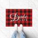 Unieke, elegante en decoratieve moderne boerenstijl doormat met schattige Kerst citaat tekst, op een klastig rood en zwart gekleurd Buffalo Lumberjack tartan controleert patroonontwerp.