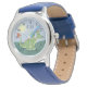 Dit schattige blauw modern kinder horloge heeft een schattige groene draak in de zon, en heeft ruimte voor u om uw jongensnaam toe te voegen. Met duidelijke, gemakkelijk leesbare nummers is dit 'eerste' horloge geweldig voor kinderen of peuters die net beginnen met het leren van de tijd. Het perfecte ontwerp met drakenthema voor je kleintje!