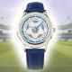 Uw eigen naam plus het team van het football u op een horloge steunt. Blauw kleurenthema.