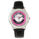 Wild zebra print gymnastiek polshorloge met roze details. Een turnsilhouet poseert in een cirkel en er is een "polka-dot" banner voor contrast. Voeg uw eigen naam toe voordat u bestelt! Gebruik daarnaast de knop "Aanpassen" voor meer opties, waaronder een ander lettertype! ©gollygirls.com