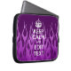 Jouw tekst over "Keep Calm" op Paarse racegevechte Laptop Sleeve