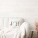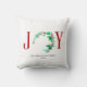 Kerst thema aangepaste gooi kussen met het woord Vreugde met waterverf-geïllustreerde halve kerst krans ontwerp.