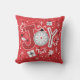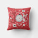 Joy Kerstmis Feestdagen Red Festive Winter Patio Outdoor Sierkussennen Cushions kenmerkt de tekst "Joy" in de moderne feestelijke typografie in rood en zilver, geaccentueerd met kerstdecoraties, siervoorwerpen, geschenken, sneeuwvlokken, heilig en bloemen. Behoorlijk voor het decor van de kerst en als geschenken voor de feestdagen. Ontworpen door © Evco Feestdagen www.zazzle.com/store/evcoholidays