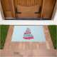 Een deurmat met een leuke en grillige illustratie. Typografie ontwerp in de vorm van een kerstboom met een aantal kerstversieringen en een ster bovenop. Binnenin staan de woorden: Vreugde aan de wereld.