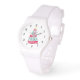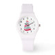 Een horloge met een leuke en griezelige illustratie. Typografische vormgeving in de vorm van een kerstboom met enkele kerstversieringen en een ster bovenaan. Inside zijn de woorden: Joy aan de wereld.