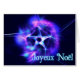 Een paars en blauw fractaal afbeelding van een vijfpuntige ster in een omringende kleur; allemaal op een donkere achtergrond. De Franse tekst "Joyeux Noё l" staat in blauw en wit gloed.