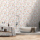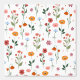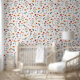 Celebrate the most beautiful days of summer with this wallpaper design inspired by wildflowers. This pattern features bright, contrasting colors including burnt orange (terracotta), coral red, soft pink, and hints of sky blue, rendered in a modern graphic style.