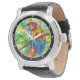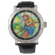 Immerse your home in the vibrant beauty of the rainforest with this stunning decorative watch, featuring a colorful parrot in a captivating stained glass-inspired design. This artistic timepiece bursts with vivid hues, depicting the exotic bird perched elegantly on a branch amidst lush green leaves, creating a unique jungle scene. More than just a time-teller, its handcrafted aesthetic and intricate patterns make it a stunning piece of wall art, perfect for adding a tropical and natural theme. This ornamental watch blends timeless beauty with modern decor, offering a bright and cheerful focal point.