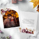 Breng de warmte van het herfstseizoen naar uw speciale dag met ons Bourgondische Arch Gold Lijst Invitation Collectie. Deze prachtige uitnodigingen hebben een rijke bordeauxrode achtergrond met glinsterende gouden accenten. Ze zijn de perfecte manier om een gepersonaliseerde foto te laten zien, waardoor uw huwelijksuitnodigingen een onvergetelijke herinnering zijn.