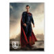 Bekijk de Superman van de Justice League die op een met mist gevuld, rotsachtig terrein staat. De zon stijgt boven de horizon in de blauwe hemel, waardoor de mist en wolken helder gaan gloeien.