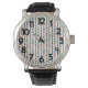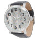 Dit mannen horloge heeft een modern middeneeuws ontwerp van concentrische cirkels van vele retro kleuren op verticale lijnen die zich over het ontwerp herhalen. Als je het ontwerp leuk vindt, maar liever verschillende kleuren hebt, stuur me dan een bericht.