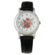 Een horloge met een boeket gemaakt met waterverven. Rode kaarsen met gouden accenten en een kleinere witte kaars ook. Omgeven door een dennenboeket met een poinsettia bloem.