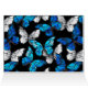 Realistische, blauwe en witte vlinders naadloos op zwarte achtergrond.