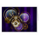 Stoomstijl spin gemaakt van goud en staal met antieke horloges versierd met gouden tandwielen op paarse, gestreepte, textuur achtergrond met lenzen en koperen tandwielen. Stoomstijl.