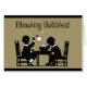 silhouette kunstwerk van twee kleine jongens die aan de tafel zitten blaasjes te blazen. Boven "Blokkende Bubels"in een uniek doopvont met cirkels in sommige brieven om de blik van bellen te imiteren