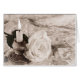 Een antiek kijkkaart met een kaars en een roos dat op satin en kant ligt. Een kaart die je op elke manier kunt personaliseren.