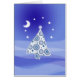 Een kleine vakantiekaart met een zoete kerstboom en sterren en maan. Vreemde tintelingen van blauwen en blanken. © Molly Harrison