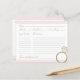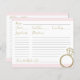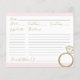 Roze en goudglitterrecept met een eenvoudig script en een glamoureuze verloving ring. Personaliseer door namen, gebeurtenissen of andere details toe te voegen specifiek voor uw gebeurtenis. Deze recept kaart is perfect voor alle bruidjes en bruiloft douches.