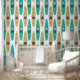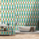 Kayakers en kanovaarders zullen dol zijn op deze schil en plak behang met kleurrijke kajak kano's