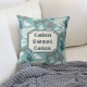 Dit is een grote kussen voor die weekendhut. Het kenmerkt een heerlijk patroon van winterbosdieren, met inbegrip van een beer, vossen, herten, konijnen, eekhoorn en vogel. Sommigen dragen winterzweet! Het patroon wordt geplaatst op een middelgrote blauwgroen blauwe achtergrond. Een kant van de kussen heeft een passende donkere blauwgroen banner met tekst die "Cabin Sweet Cabin" zegt. De tekst kan gemakkelijk worden veranderd in om het even wat u zou willen. Cute!