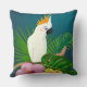 Geef een tropische sfeer aan elke kamer in uw huis of kantoor met dit kleurrijke decoratieve kussen. Het heeft een kaketoe op een tak, palmbladeren en gele en roze hibiscusbloemen op een turkooisblauwe achtergrond. Dit kussen zal zeker elke ruimte opvrolijken.