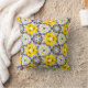 Kaleidoscoop Bloemen in Geel, Blauw, Grijs Kussen