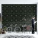 Versier de muren van uw huis met dit moderne caleidoscoop-ontwerp van dauw overdekte sterren met een zwarte achtergrond.