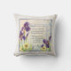 Een zacht verouderde en getextureerde linnen achtergrond van gebroken wit op de voorkant wordt gecombineerd met een bleke mistige lavendel op de achterkant voor een elegant mooi home decor gooi kussen. Dit ontwerp begon met een origineel vers van Audrey Jeanne Roberts en werd gecombineerd met haar waterverf kunstwerk van paarse irisbloesems fris uit haar eigen tuin in combinatie met libellen, paisleypatronen en lentebloesems het kunstwerk wordt gecombineerd met de hand geletterd in kalligrafie voor het afgewerkte ontwerp. Copyright, alle rechten voorbehouden.