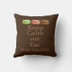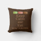 Gooi kussen in een patroon van Limoen-, aardbei- en chocolade-Franse macarons die de klassieke boodschap "rustig houden" vergezellen