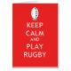 Ideaal geschenk voor rugby-ventilatoren en -spelers. gemaakt in de stijl van de bekende Britse WW2 "Keep Calm and Carry On"-propaganda-posters; de kroon wordt vervangen door een rugbybal en de slogan luidt "Kalm houden en spelen Rugby".