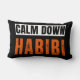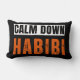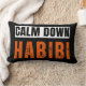 Kalmeer Omlaag Habibi kussen home decor van Arabix. Grappig arabisch gezegde kalmeer habibi in zwart, wit en sinaasappel voor uw slaapkamer, woonkamer, slaapzaal, enz. Kalmeer Habibi voor jezelf of als cadeau voor een vriend.