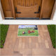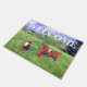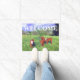 Deze deurmat heeft een groep schattige lentekalveren en het woord welkom bovenaan is ideaal voor de koe liefhebber of boeren deurstap.